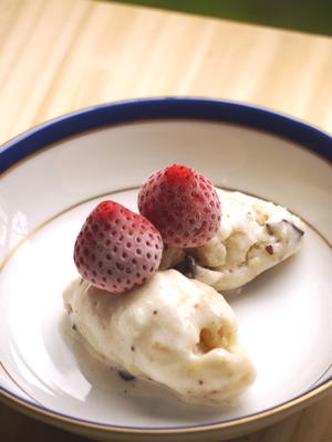 上に乗っているいちごは、そのまま冷凍した、「凍りイチゴ」です。